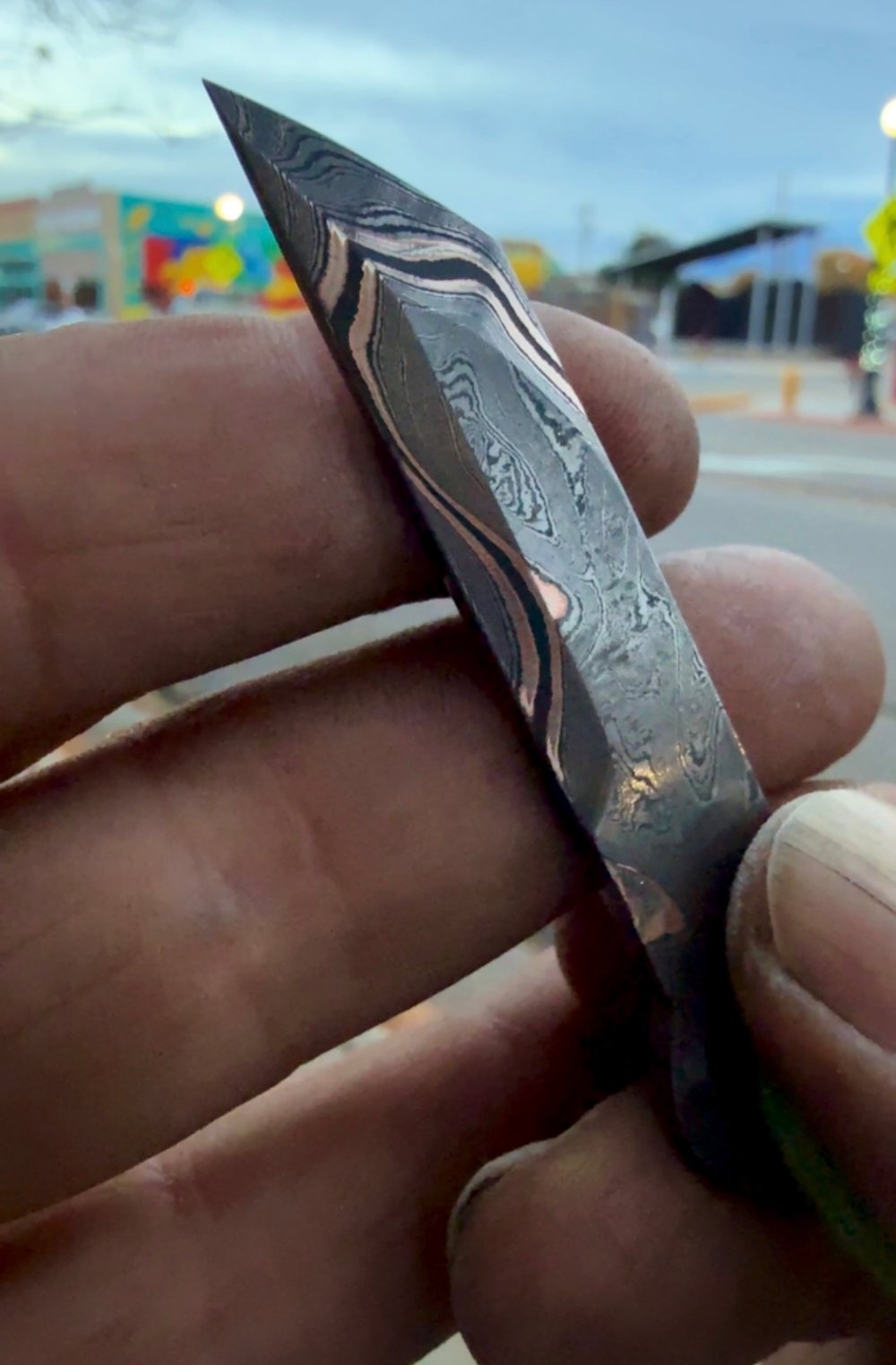 (CopperMai, Copper Damascus, features vibrant, one-of-a-kind patterns that make every billet a unique masterpiece)